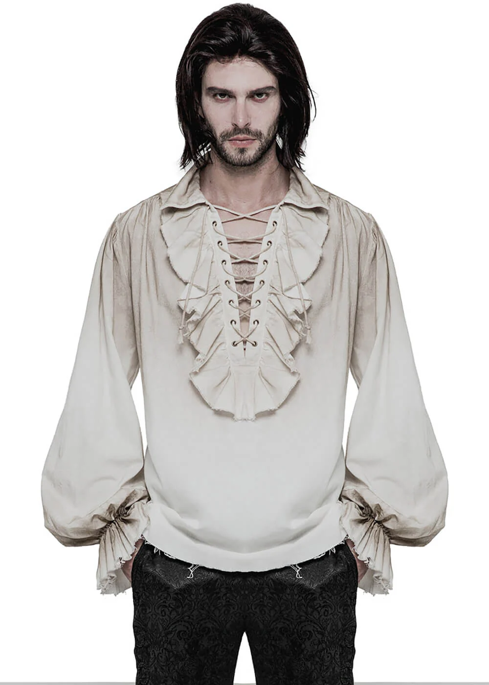 Voor een poetische vampierlook, weergaloze piraten outfit of omdat je zo van de voorkant van een romannetje af wil stappen, met Armand doe jij hoofden draaien! Met zijn onafgewerkt randen, veterdetail en antiek wiite kleur is dit het shirt waar je niet zonder wil. En je kan jezelf toch geen ongelijk geven?