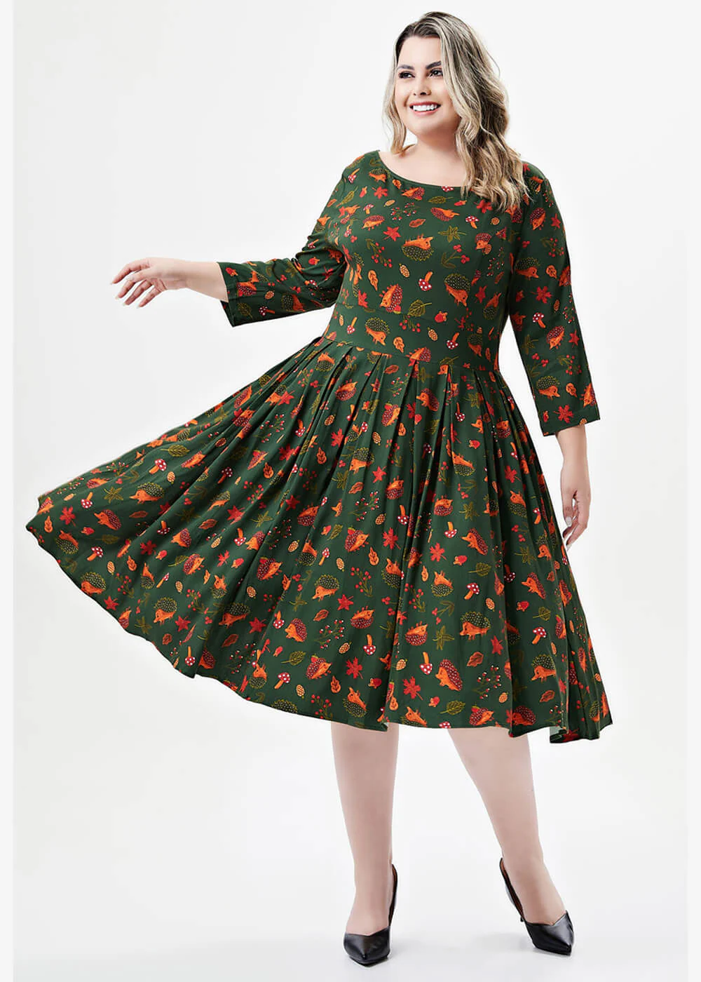 Amateurs de mode vintage, préparez-vous pour Amaya : avec son élégante encolure bateau, son dos délicatement découpé, ses manches trois-quarts (pratiques pour l’automne) et bien sûr, le motif automnal le plus mignon qui vous apportera de la bonne humeur même sous un ciel gris. Comment résister à un tel chouchou ? Impossible 😉
