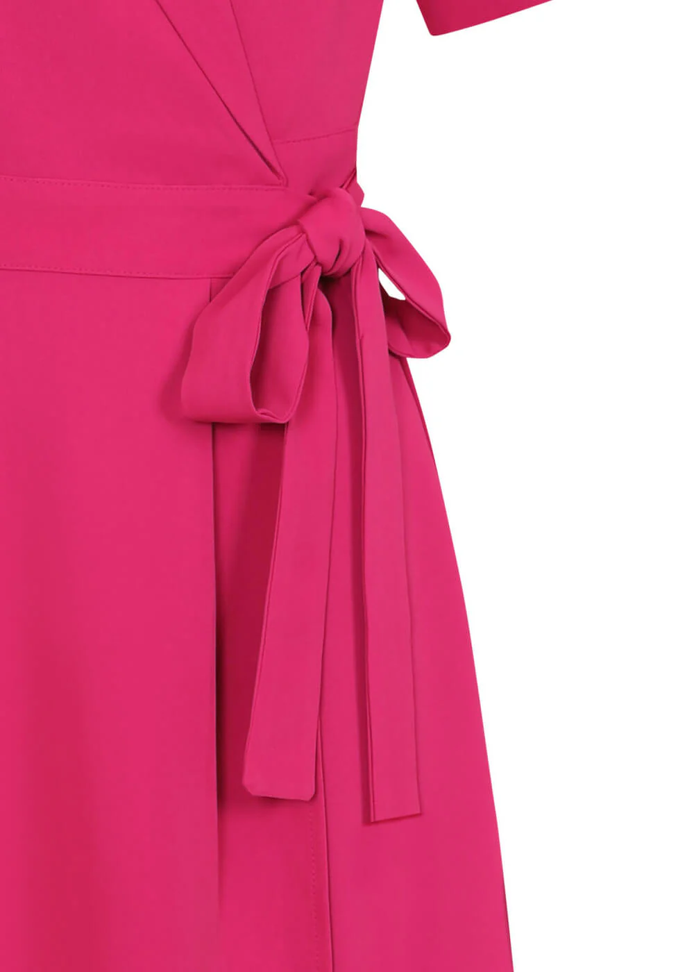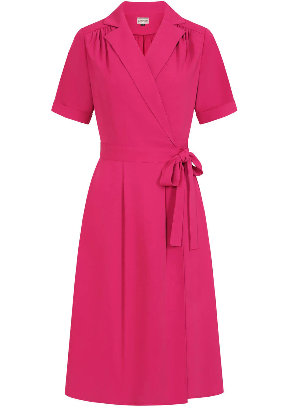Que ce soit pour un dîner, au bureau, une fête ou en vacances ; peu importe où vous emmenez Judy, vous serez toujours la mieux habillée ! Ce petit bijou inspiré des années 40 en violet/rose berry est aussi élégant aujourd’hui qu’à l’époque, et incroyablement pratique avec son modèle enveloppant et sa forme en A. Enfilez-le et vous êtes prête à conquérir la journée avec style !
