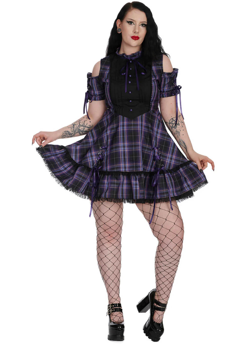 Chez Succubus, les robes amusantes ne manquent pas, quel que soit votre style vestimentaire ! Cette robe en style Lolita de Banned est à la fois douce et audacieuse, remplissant ainsi différentes fonctions dans votre garde-robe. Elle vous ira à merveille ! Profitez pleinement de son imprimé tartan violet et de son design épaules dénudées.