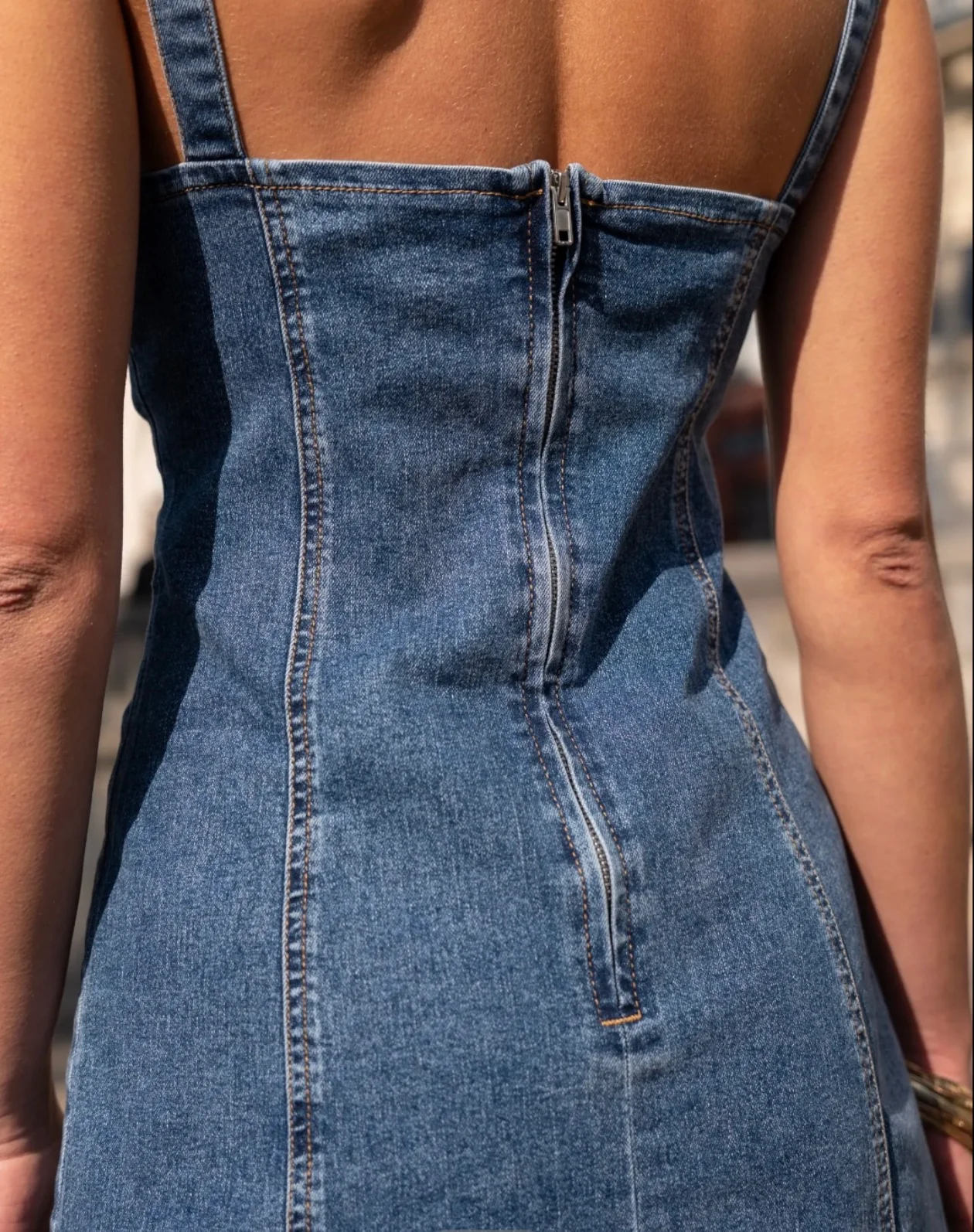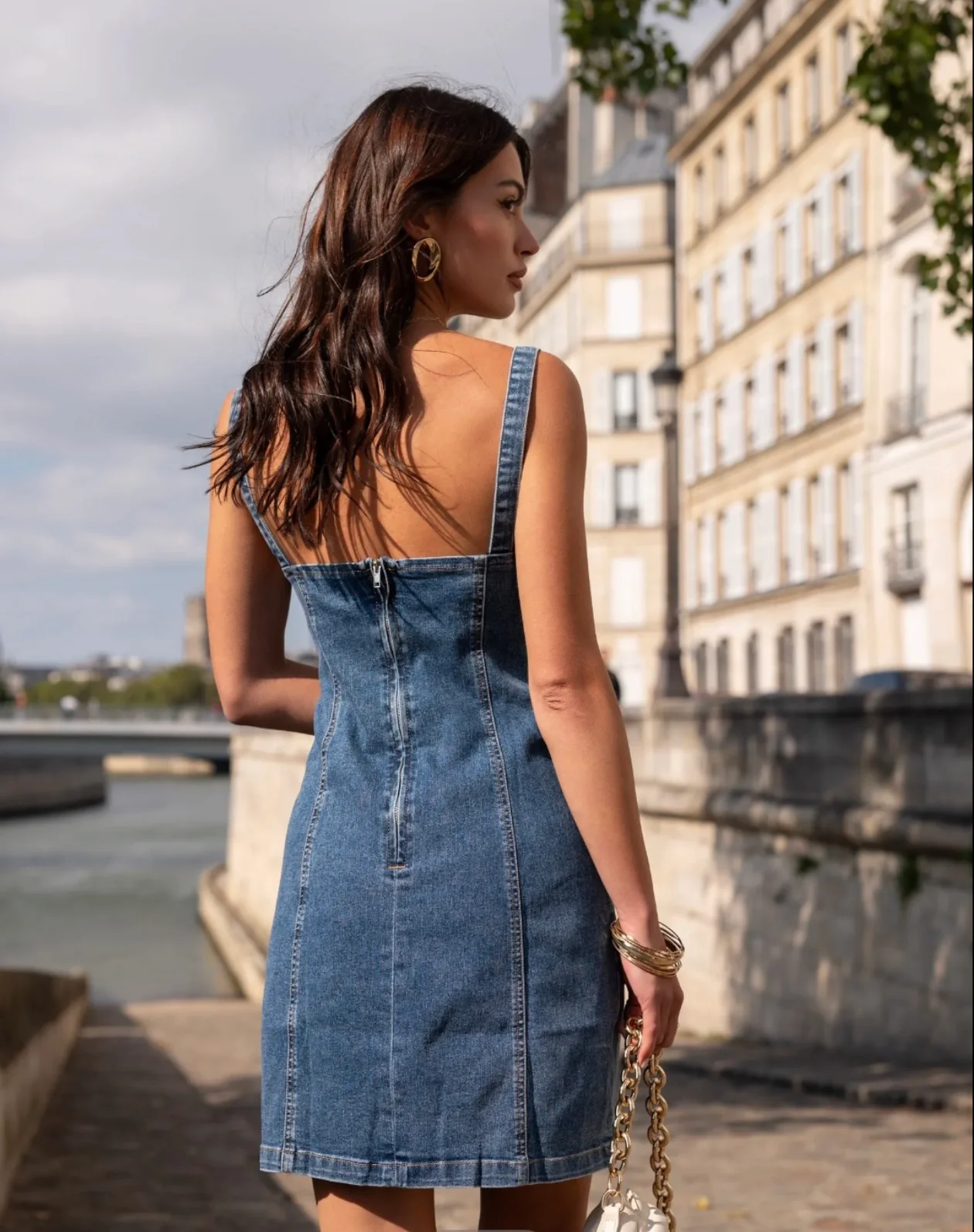 Robe en denim moulante au style rétro-chic et élégant, idéale pour sublimer la silhouette avec féminité. Parfaite pour une sortie habillée ou un look casual raffiné.