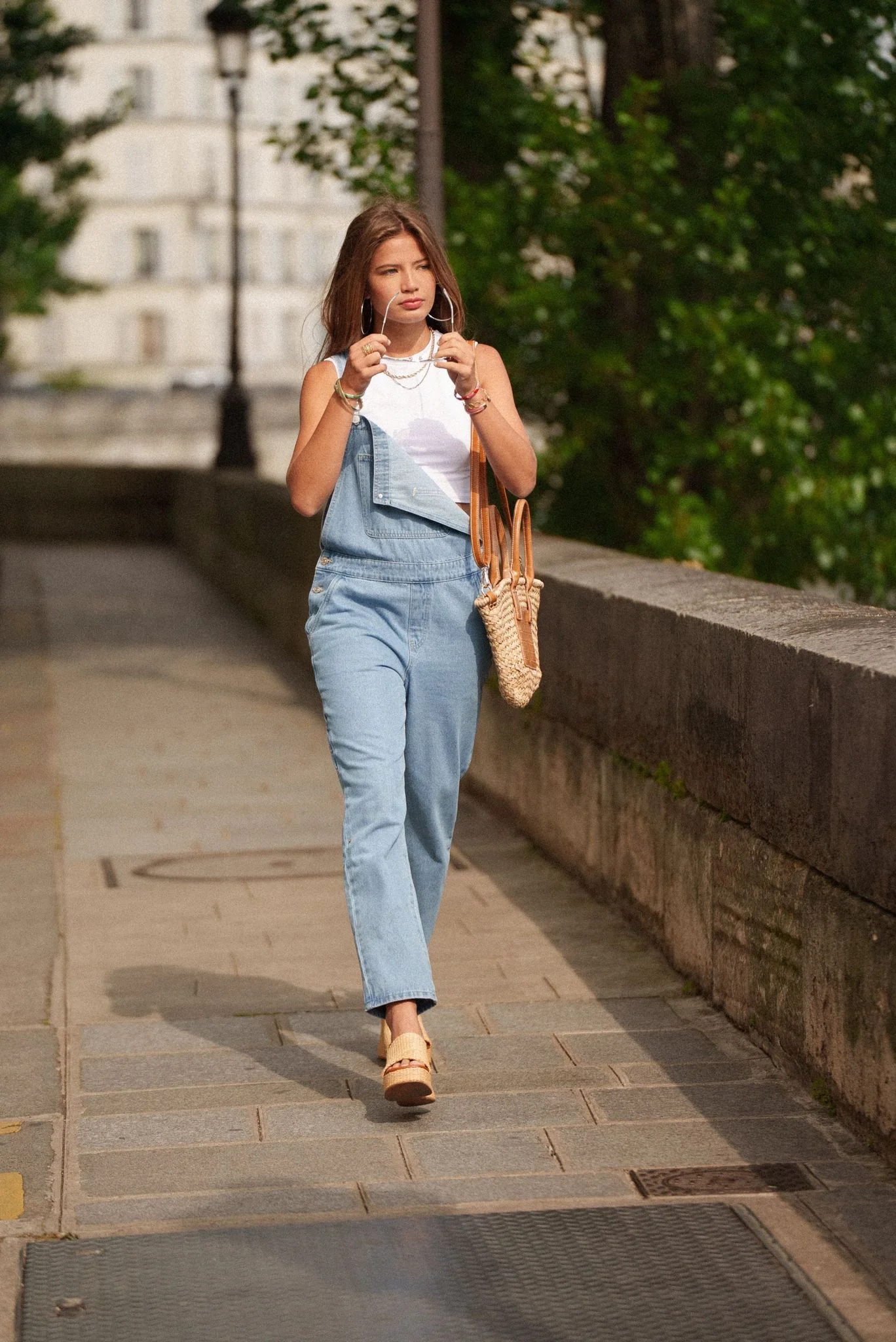 Salopette en denim clair, parfaite pour un look estival casual et stylé. Confortable et intemporelle, elle s’adapte à toutes les morphologies tout en offrant une allure décontractée.