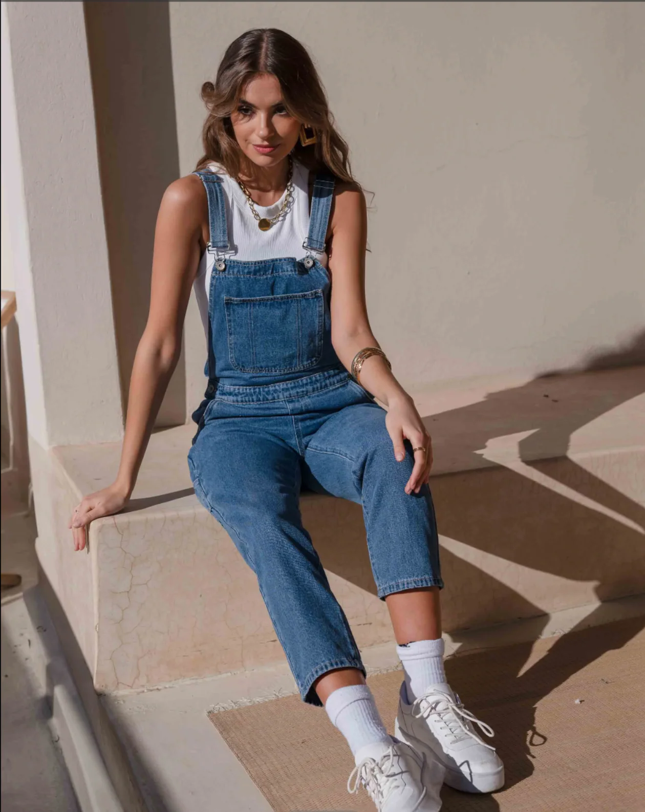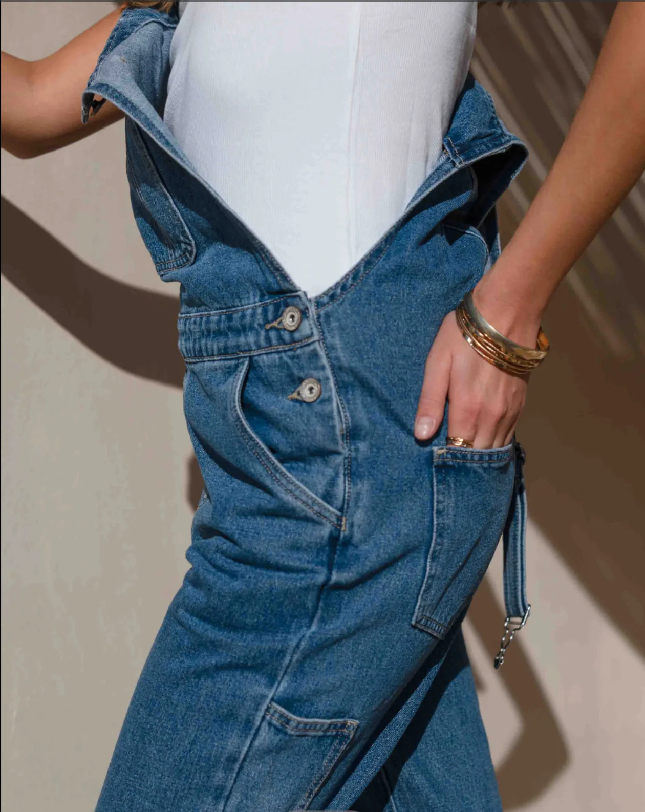 Salopette en denim bleu brut, à la fois tendance et confortable. Idéale pour un look décontracté au quotidien, elle s’adapte à toutes les saisons selon les associations.