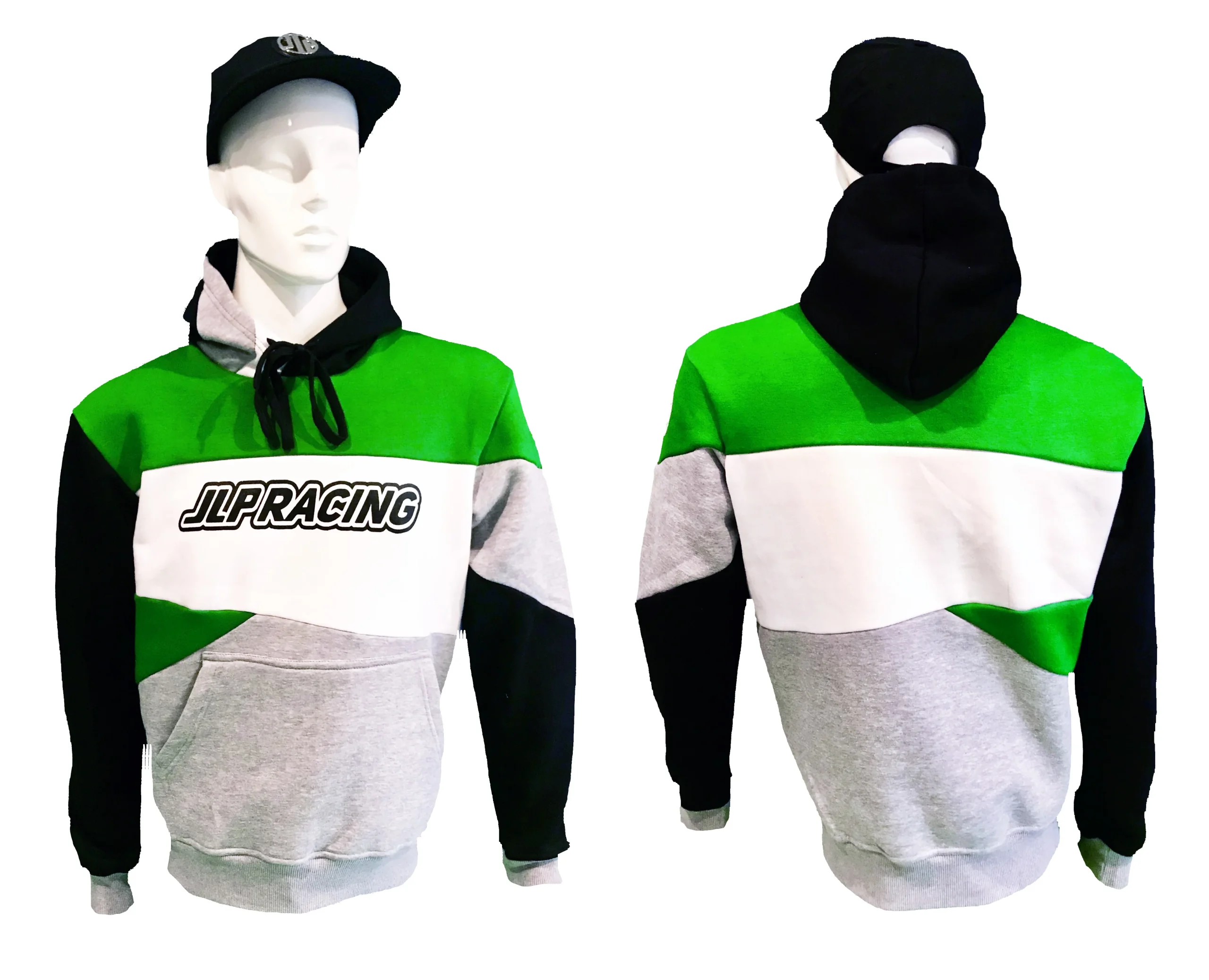 Hoodie JLP RACING, logo sérigraphie noir.100% Coton.