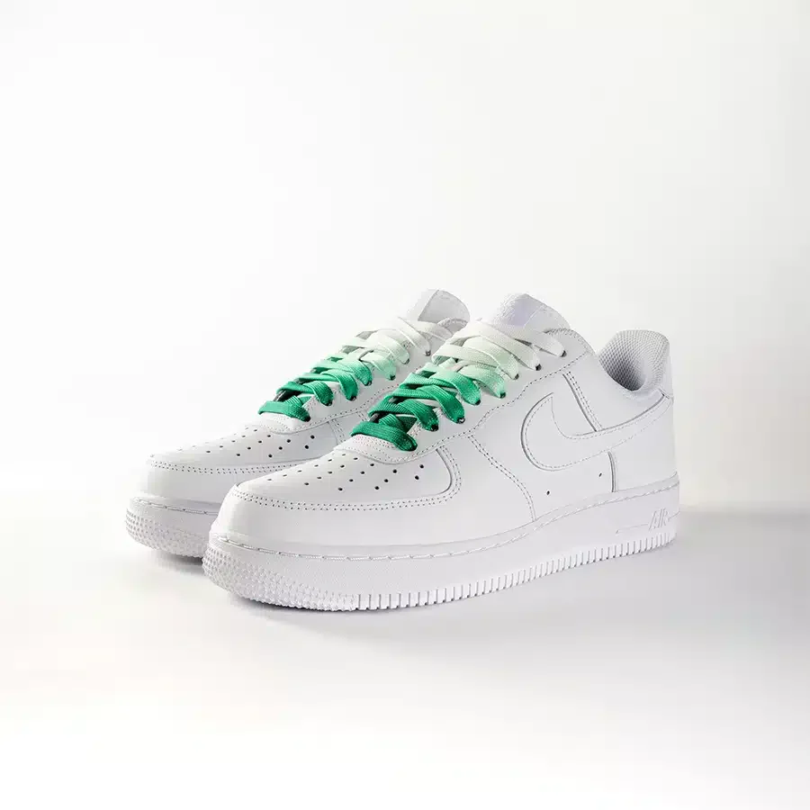 📸 Visuels : Lacets plats en polyester, finition dégradée du blanc au vert forêt. Adaptés à toutes les sneakers et disponibles en plusieurs longueurs.