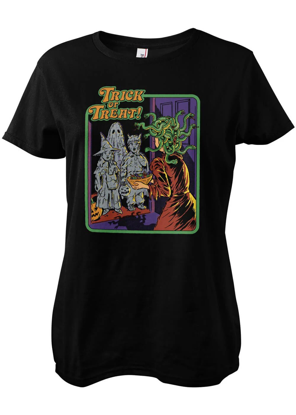 Vous allez certainement faire sensation avec ce t-shirt lugubre, grâce au motif amusant de Méduse pour Halloween. Ce t-shirt pour femmes est en 100 % coton avec un léger stretch, ce qui le rend toujours en tête de votre pile. Ce modèle Girly épouse parfaitement les formes et est assez long pour être porté sur un pantalon, mais aussi très ludique au-dessus d’une jupe taille haute. Comment résister à une image aussi douce mais pas si douce ?