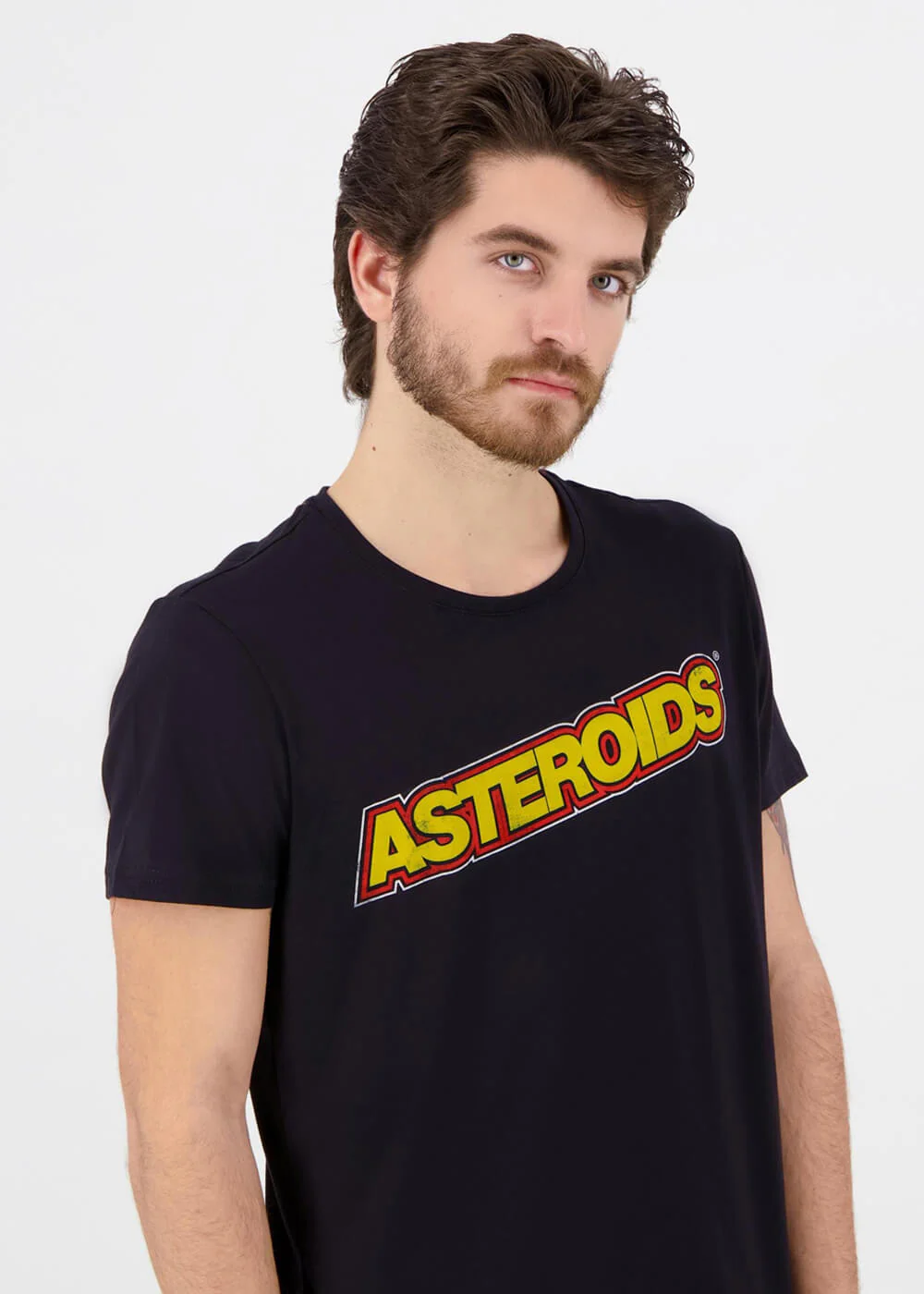 T-shirt Homme Retro Games Atari Astroids Logo Noir