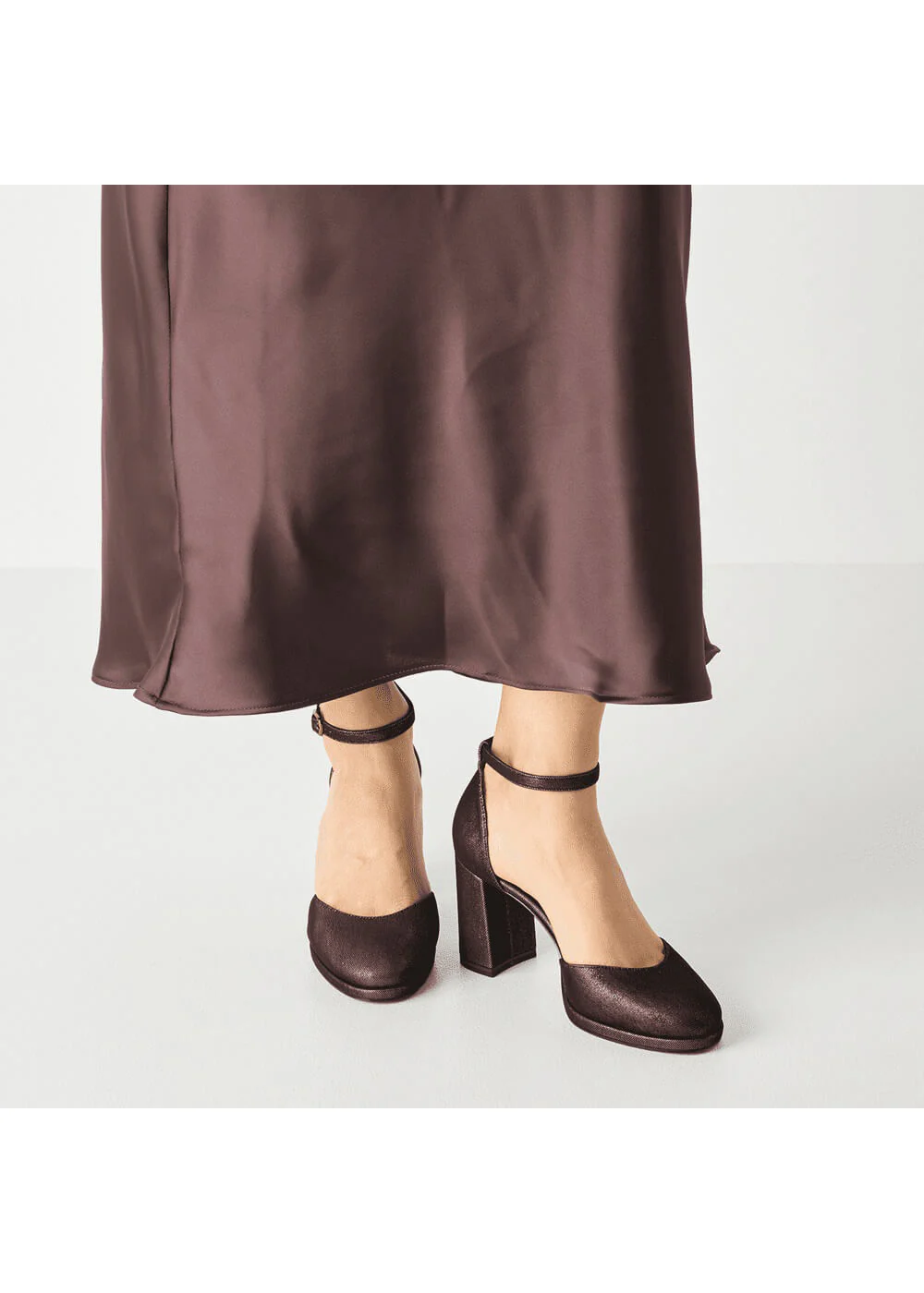 Farrah combineert een klaar-voor-alles 70’s look met tijdloos chique, en staat net zo elegant bij onze vintage-sweethearts als bij de dame van vandaag! Haar verstelbare bandje, haar glanzende koperkleurtje en hak van 9 cm maken haar dé perfecte pump voor iedere dag, wat die dag ook brengt: kantoor, avondje uit? Met Farrah loopt je de hele dag op wolken 🙂