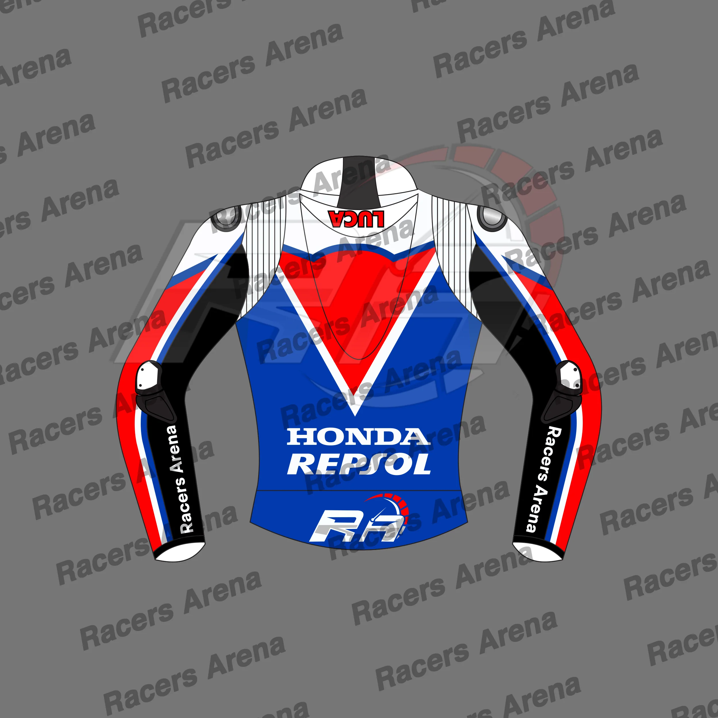 Veste de course en cuir Luca Mrini Honda Repsol British GP 2024 pour moto : SPÉCIFICATIONS ET DÉTAILS DE CONSTRUCTION :