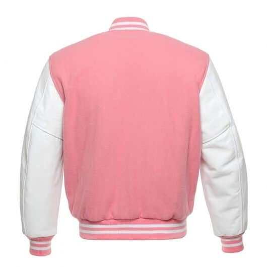 Soyez le premier à laisser votre avis sur “Veste Letterman rose avec manches en cuir blanc”