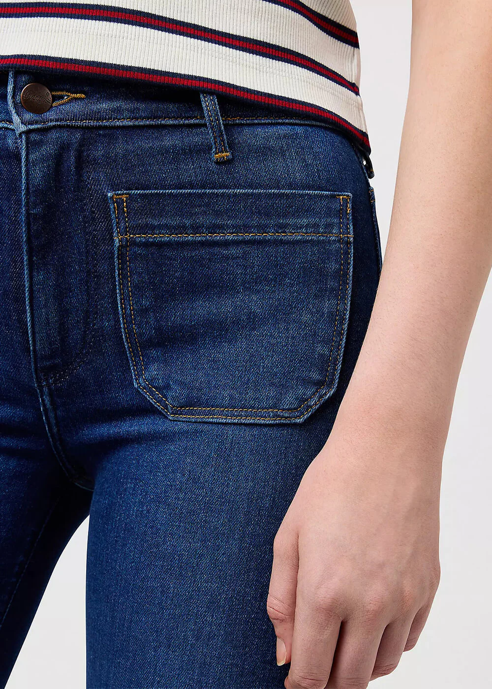 De la ferme au festival : ce jean flare réveille l’esprit des années 60 et 70 en toute simplicité. La taille midrise et les jambes évasées dessinent une silhouette féminine et flatteuse, avec une touche rétro subtile. Le denim doux, à élasticité moyenne, est confortable dès le premier porté — exactement ce qu’on attend d’un véritable Wrangler. Un jean plein de caractère pour celles qui aiment le style et la liberté.