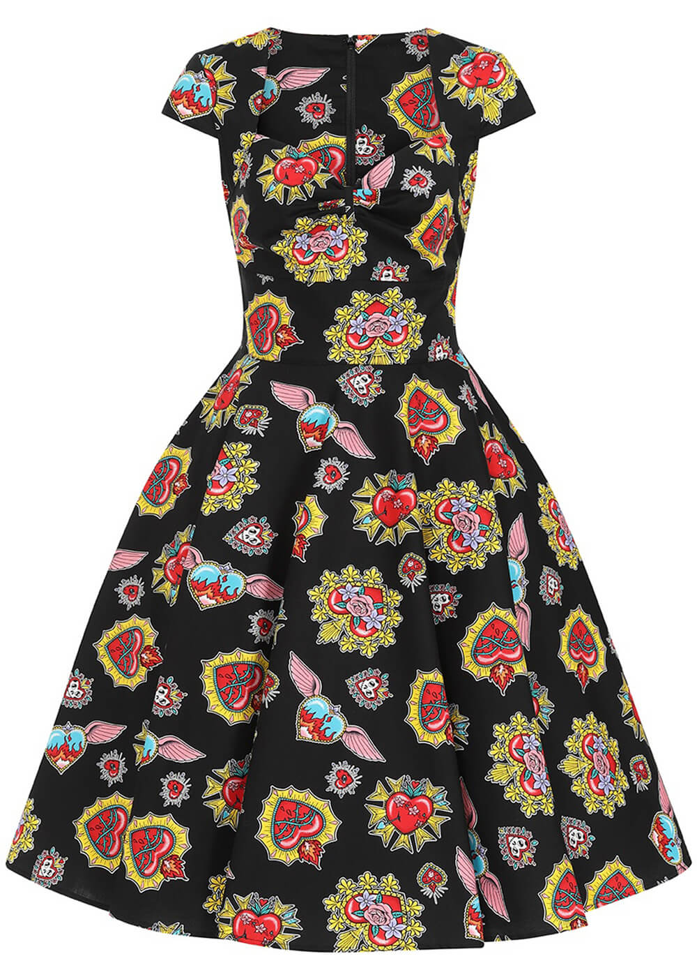Hell Bunny Amias Cœur Sacré Robe Swing des Années 50 Noire