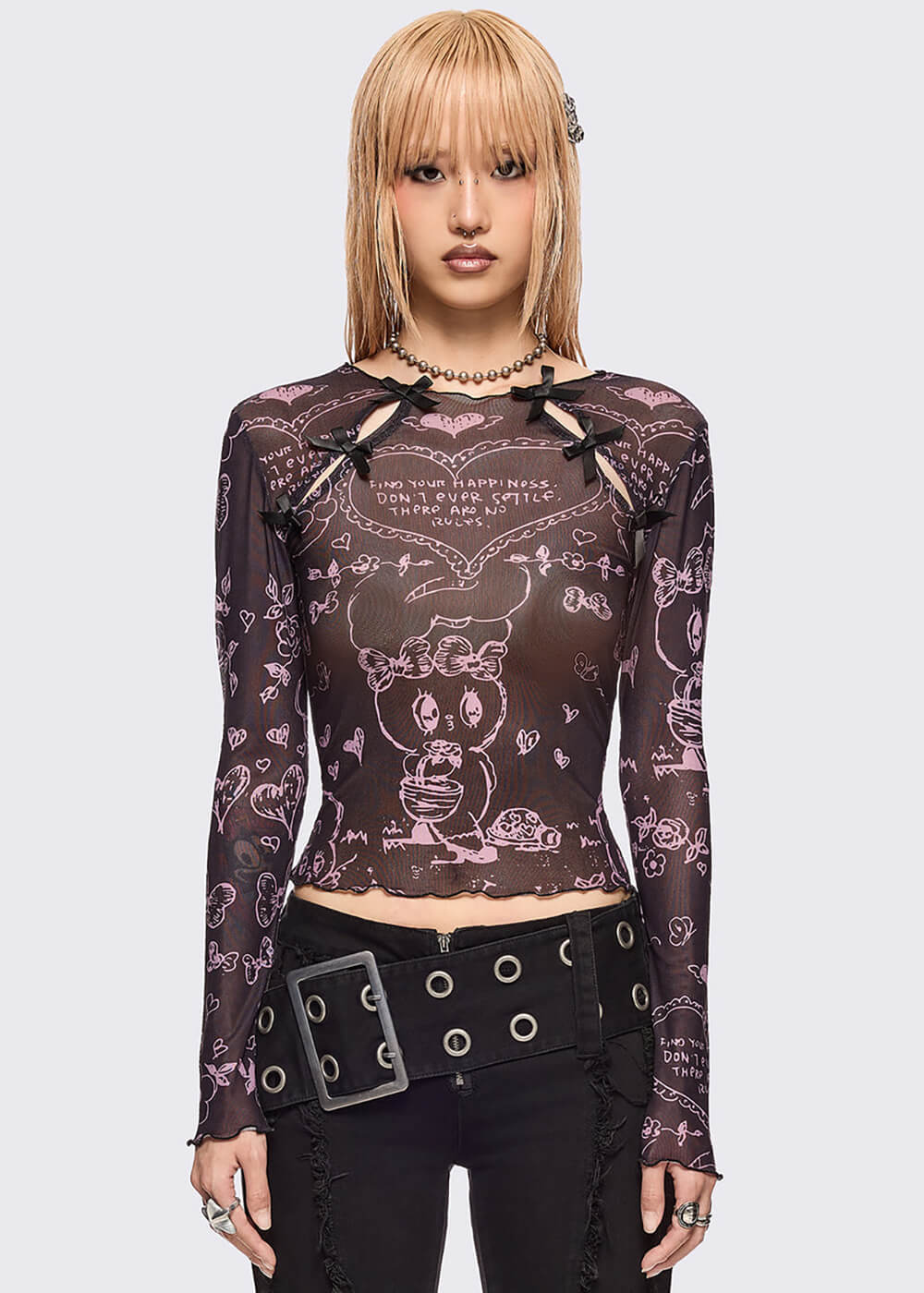 Minga London Esther Bunny Top en Mesh Noir et Rose