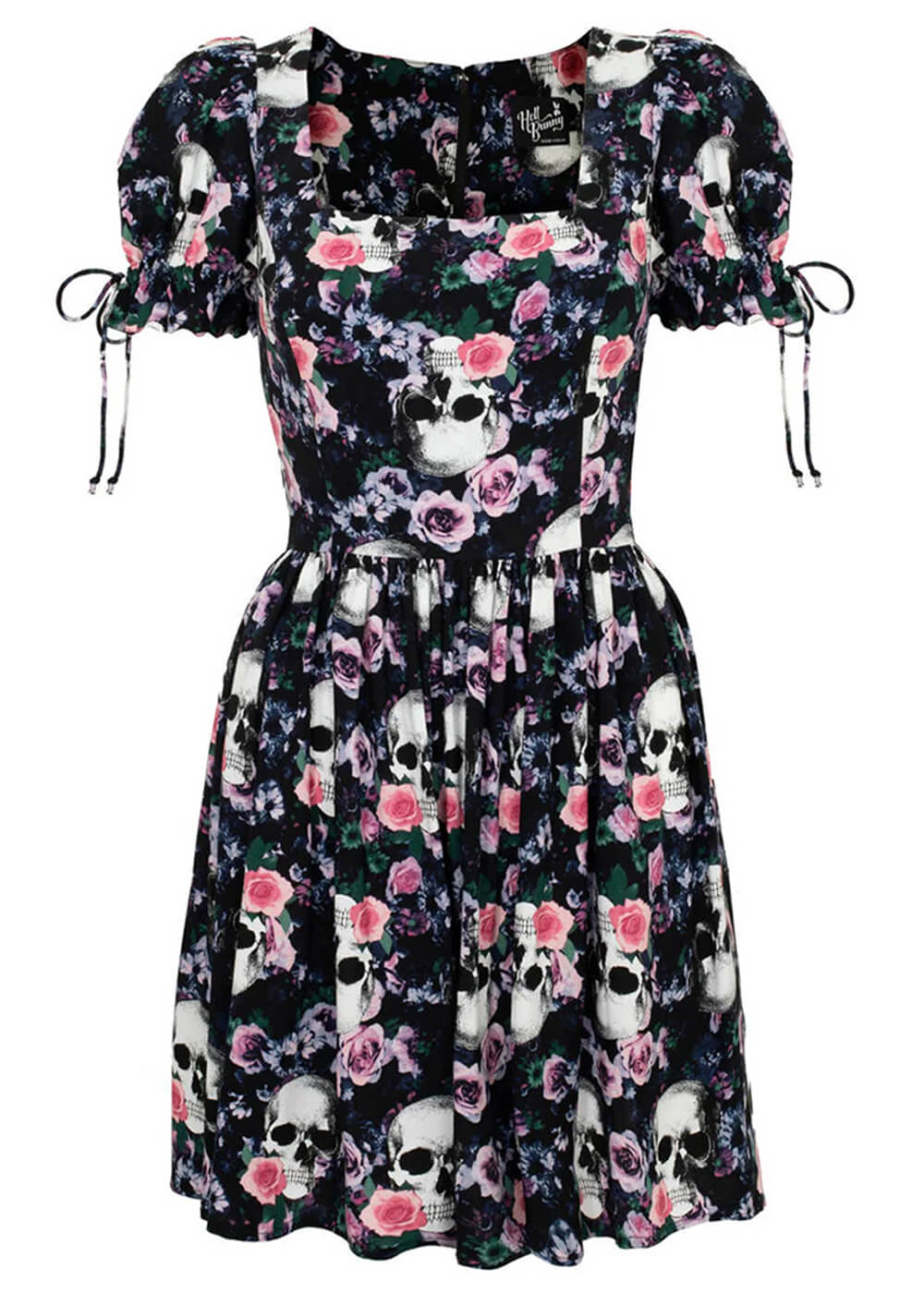 Hell Bunny Robe Mini Dorian Skull Roses années 60 – Noir