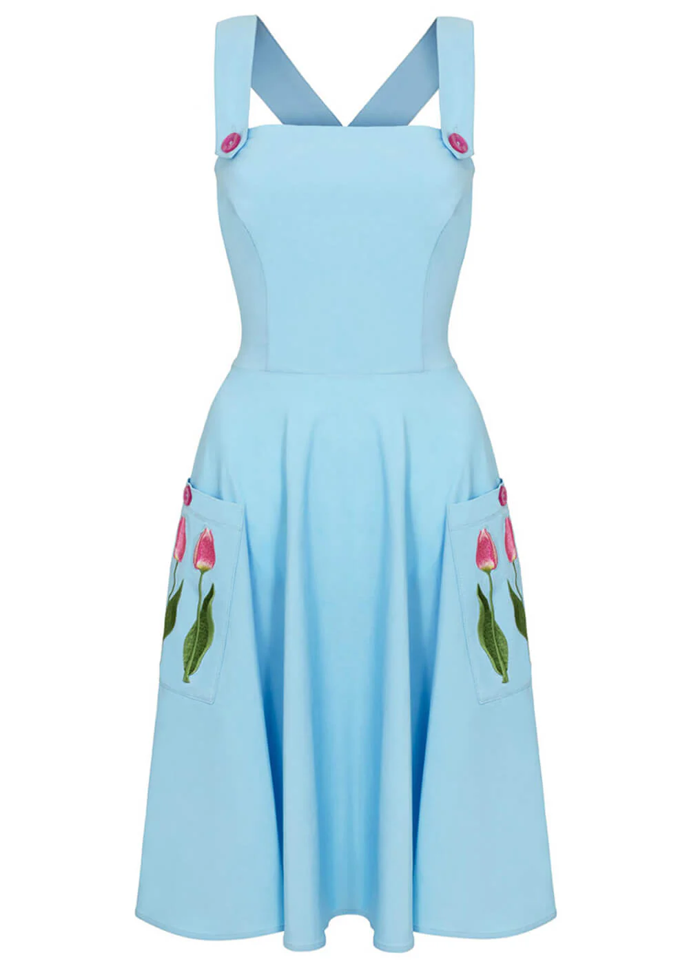 Hell Bunny Tulip Robe swing années 50 — Bleu clair