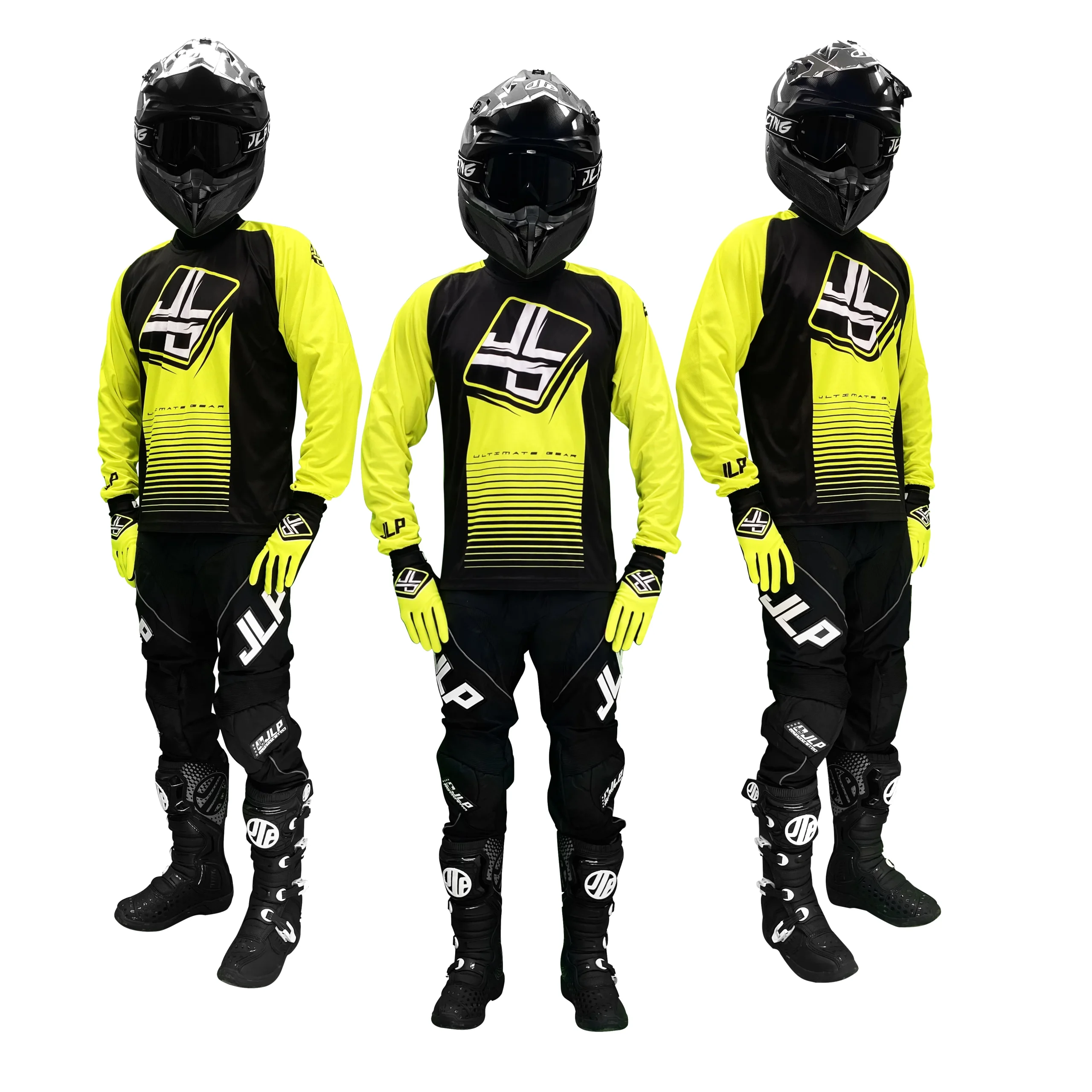 TENUE PANTALON MAILLOT GANTS MOTO CROSS QUAD ENDURO VTT BMX MTB JAUNE FLUO STRIPES JLP RACING