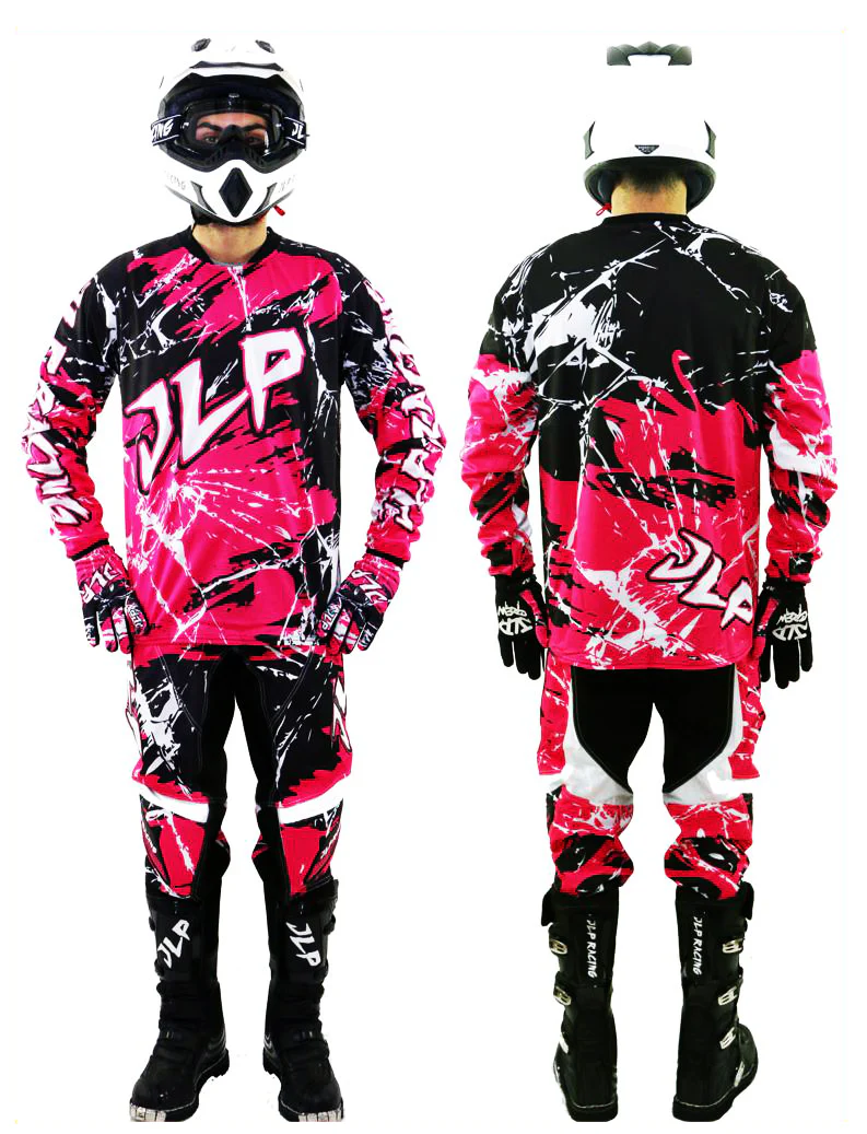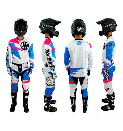 TENUE PANTALON MAILLOT GANTS MOTO CROSS QUAD ENDURO VTT BMX MTB BLANC ROSE BLEU FLUO JLP RACING